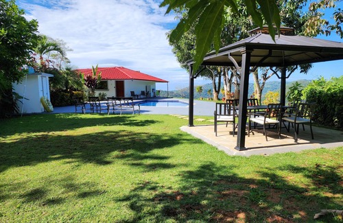 The unit is located in the Cascada Azul community, which is a very safe and quiet community. It is one of 10 units nestled on a Jungle bluff overlooking the majestic Baru River Valley. With the exception of the occasional visit from Toucans, Macaws, Agoutis, Coatis, and Monkeys that patrol the area, you will have complete privacy. The condo has one private bedroom with a Double bed, nightstands, and a custom wardrobe to hang and store all of your belongings. The bathroom has a large shower, a spacious countertop and sink, drawers for storage of towels and toiletries, and YES, we have on demand hot water! The living room and kitchen are one open space with a sliding door that opens to your private back patio, that incredible view and ever changing ocean sunsets. There is a custom futon/sofa bed that folds out to sleep 1-2 people. The furniture is handmade by local woodworkers with native wood. The kitchen is fully furnished with dishes, silverware, utensils, etc. It also has a full refrigerator, freezer, stove, blender and microwave. There is a small dining area inside as well as patio furniture should you want to eat outside. The television has cable, and you are welcome to use your own streaming devices as well. If you would like to utilize the grill, it is shared and located near the pool. We also offer free access to the washer and dryer and just ask that you be mindful and considerate of other guests.
