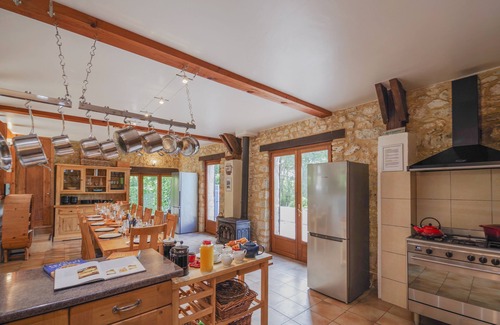 The focal point of ACABANES is a vast sitting room measuring 9m x 8m and which is open to a magnificent timbered 'cathedral' ceiling. This sitting room is full of character with the original stone walls and tiled floors. Located within the lounge is an entertainment area which includes a 50in SMART TV, connected to a DVD and VCR. A championship pool table is also in the lounge area which our guests really enjoy and many tournaments are enjoyed late into the evening. There is a comprehensive Information Area with maps and leaflets. There are lots of board games for all ages for our guests to enjoy.