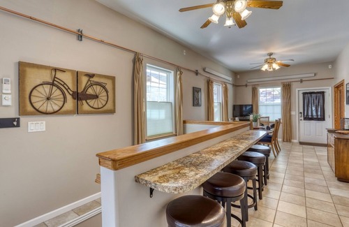 Open-Concept Kitchen & Dining Area: The fully equipped kitchen and adjacent dining space create an inviting setting for shared meals and conversation. The dining table seats 6, with 5 additional stools at the breakfast bar.