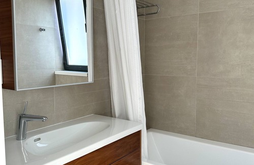 While you're here, you can enjoy all the comforts of home and more, including WiFi and a bidet, as well as towels and bed sheets. Other amenities include soap and a hair dryer.