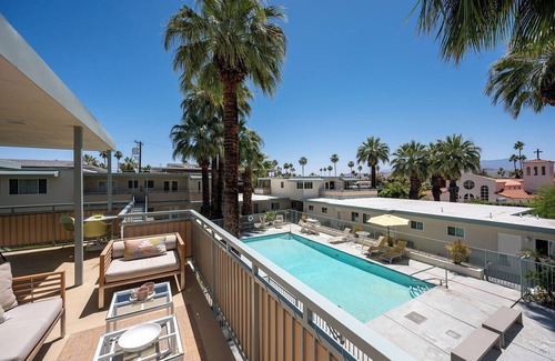 Welcome to Albert Frey's Villa Hermosa! Located in downtown Palm Springs, our 2 bedroom 2 bath condo offers timeless style, relaxation and some of the best views of the San Jacinto Mountains. Nestled in one of Palm Springs' most iconic neighborhoods, you have the opportunity to view some of the most beautifully designed homes in the world, many of which are celebrity owned. The complex is walkable to everything in Downtown including a plethora of restaurants, museums, art galleries and more!