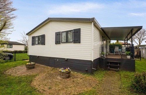 This chalet in Lith welcomes a small family or a group of 4 and offers a private terrace and garden for lingering and relaxing, and the garden furniture makes it complete. There is a jet black sofa which makes the living room extremely cosy, and the master bedroom has a 2-person bed. You can park your car in the general (guarded) parking lot as the chalet does not offer a parking facility.
