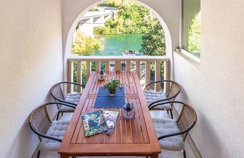 This simply furnished holiday home is located in the small village of Blato na Cetini, in the unspoilt nature of the hinterland and not far from the historic town of Omi. It is located right next to the river Cetina and there is a pebble beach below the house. There is a barbecue at your disposal, where you can prepare regional specialities or enjoy delicious meals in a restaurant on the riverbank only 200 m away. We also recommend rafting on the Cetina River or days of fun at the seaside on the Omi Riviera, just 15 kilometres away. Relax and enjoy the benefits of this natural paradise.