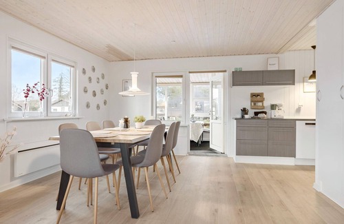 Enjoy your vacation in Diernæs Strand and stay with a family friend or your loved ones in this tasteful house. Feel at home here and let yourself be enchanted by the charm of the house, which is characterized by the light wooden walls and the appealing furnishings. Cook together or play cards in the conservatory. In the summer months, the terrace invites you to enjoy meals together outdoors. Barbecue or roast bread or marshmallows in the evening over the fire pit in the garden, which is ideal for sunbathing or playing during the day.