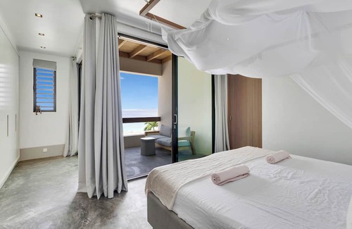 The villa also has a stone staircase with which you can walk directly from the garden into the clear blue sea and admire the underwater world of Bonaire.