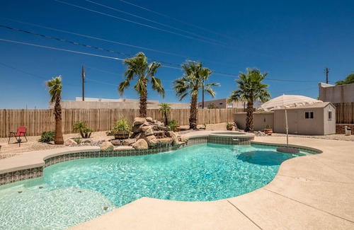 Amazing pool, jacuzzi & waterfallresort-like backyard! is located in Lake Havasu City. Amazing pool, jacuzzi & waterfallresort-like backyard! provides accommodation, featuring Bedding/Linens, Wellness Facilities, Pool, among other amenities. This House features Bedding/Linens, Wellness Facilities, Pool, to make your stay a comfortable one.