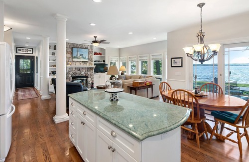 A new luxury addition to the Special Properties portfolio. Comfortable year round 4 bdrm, 3 full baths, lake house on the southwest shore of Big Green. Open 1st floor plan with 10ft ceilings with all 1st floor rooms and den open to the Lake. Large lake side level yard has 95 feet of lake frontage with 75 ft pier into the lake. 2 lake side patios and a cozy front siting area says relax . 2nd floor sleeps 8 comfortably with a master suite and another full bath. Hardwood floors throughout.