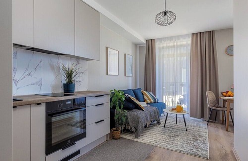 The apartment is located in the very best part of the city center with a beautiful park. Very quiet location. The apartment has a balcony leading to a private park, with a children's playground, and when you leave the courtyard you will go directly to the OZO park. The OZO park has walking trails, three lakes with bridges, ducks swimming. Events such as the City Picnic, food trucks, Disc Golf and sporting events take place here.