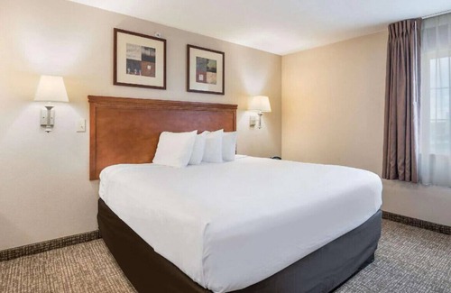 Welcome to our property! Enjoy your stay in the comfort of our cozy bed with a premium mattress, soft linens & fluffy pillows, & plenty of great amenities like a flat-screen TV, coffee maker, & refrigerator that will make you feel at home. Enjoy a workout in the fitness center & a dip in our indoor pool. Additional amenities are the laundry facility and the vending machine for your convenience. We're so excited to welcome you! Miscellaneous fees may be subject to additional costs after booking.