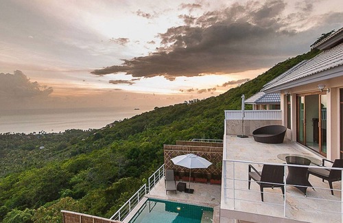 The upper terrace leads off the master bedroom, providing panoramic views, perfect for glass of wine at sunset!