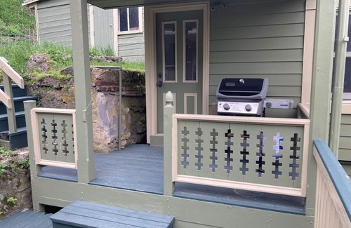 Enjoy our unique private studio apartment, near a unique historic stone house and all things downtown Galena. This beautiful and spacious apartment is completely stocked for eating in, with a sink, refrigerator and microwave. It has a private full bathroom, queen bed and comfy furniture. Additional amenities include an outdoor patio, a gas grill and spa room with sauna. It's a lovely space for couples.