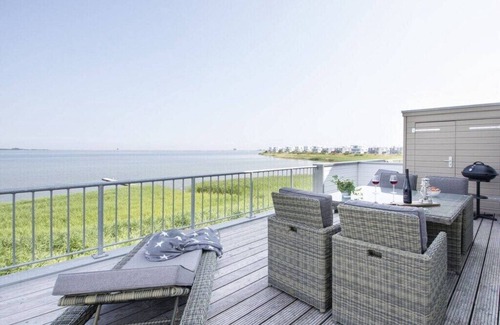 Welcome to this exclusive holiday apartment in the OstseeResort Olpenitz, just 20 meters from the water, right on the banks of the Schlei arm of the Baltic Sea. The apartment extends over two floors (1st and 2nd floor) and has been furnished with selected luxury furniture in Scandinavian style. As soon as you enter, you will be greeted by an inviting atmosphere. The panoramic windows in the dining area, the bedroom and the spacious bathroom offer you a breathtaking panoramic view of passing sailboats and the picturesque Schlei estuary. The great terrace offers the perfect place to relax and enjoy the view of the water. You can also experience the beauty of the surroundings from the panoramic windows in the living room. A fireplace not only gives the living area a cozy feel, but also creates a warm and inviting atmosphere. There is also a second balcony at your disposal, which offers a view of the greenery. The absolute highlight of this apartment awaits you on the top floor: a wellness bathroom that impresses with a whirlpool, rain shower and a private Finnish glass sauna with a view of the water. Here you can perfectly relax and leave everyday life behind you. The two bedrooms are also on the same floor and boast comfortable double beds, generous storage space and fantastic views of the water or the greenery. This stylish apartment can accommodate up to 4 people thanks to an extra bed.