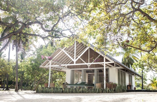 Two, pitched roof, rectilinear structures topped with neatly braided thatch create this vacation home for rent in Brazil with delightful castaway vibes. Designed by a French architect and his wife, the pair of rectilinear spaces is joined by a wide central deck that skims the sand and features planters of lush vegetation, an outdoor dining area, and ample daybeds, loungers and hammocks for lazing in the area’s legendary tropical breezes.One cabana holds the home’s social areas, a neat, open-plan kitchen, dining, and living room fully open to the outdoors, only interrupted by the built-in sideboards between the louvered doors lining the room. The décor is casual yet composed, with accents of straw, sea grass and thatch offsetting white ceiling beams and the shuttered doors. The second cabana holds two master bedroom suites at each end, and a large central bedroom with four single beds. Each bedroom has a dedicated bathroom, and the double bedrooms open out to private patios. Beds are draped in netting, adding to the tropical vibe, and the bathrooms are clean lined and convenient, with walk-in showers.Simple luxury is at the core of this home’s philosophy, and it offers a true melding of indoor and outdoor living. Indoor spaces are fully equipped and comfortable, yet the abundance of louvered doors along both structures puts the focus outdoors. The manicured deck is the home’s foundation, and it offers outdoor living and dining spaces as well as wide daybeds for truly unwinding.ADDITIONAL FEATURESThe managers live in a separate home on the same property and are available to help at all times. A housekeeper is present throughout the day and, for an additional fee, can help guests to prepare breakfast. In addition, guests can hire a housekeeper in the evenings to help with cooking and cleaning. Atins has mini-supermarkets, greengrocers and butchers, and it's possible to order more items from the delivery service Barreirinhas. The owners recommend renting a quadricycle for a more enriching and comfortable experience.AROUNDThis vacation home for rent in Brazil is located in Atins. A small fishing village in northeastern Brazil along the Atlantic coast, it remains ultra-remote, a mostly undeveloped sandy paradise that is gaining fame for its world-class winds for kitesurfing and unique, lagoon-lined sand dunes. A sweet, small town with no paved roads and only a few services, Atins is the best base from which to visit the epic sand dunes of the Lençóis Maranhenses National Park. The park’s dunes are astounding, soaring up to 40 meters high and filled with a maze of turquoise lagoons that wind for miles through the white sand. Kitesurfers zigzag across the lagoons, and exploration on horseback, 4x4 or guided on foot is also possible. Beaches around Atins are luxuriously empty, dotted with the colorful sails of kite schools and a handful of funky cafes and beachfront, barefoot taverns.LOCATIONBarreirinhas/Atins, Maranhão, Brazil. Nearest airport: Marechal Cunha Machado International (103 miles).BEST TIME TO VISIT: July to November for kitesurfing winds