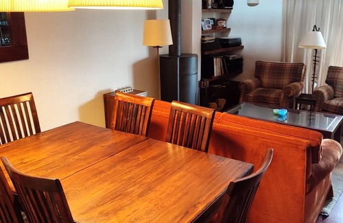 This beautiful apartment, fully furnished is ideal for 8 people, just 5 minutes from Puigcerdà. It has 3 double bedrooms, one with 2 bunk beds and 2 with double bed. It has also 2 full bathrooms, living room with fireplace and private terrace with stunning views of the mountains, a fully equipped kitchen, private outdoor parking, storage and community pool and padle court.