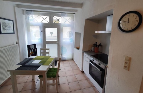 The light-flooded, ground-floor Non smoking apartment offers you on 55qm² comfortable living comfort. When entering the apartment you are in the living room, which is equipped with sofa, satellite TV, DVD player and book corner. In the adjoining daylight kitchen you will find a bachelor's kitchen with fridge, two-plate stove and sink. Further you will find there a coffee maker, microwave, toaster, water and egg cooker. The spacious dining table invites you to dine together. On the ground floor you will find the bathroom with shower, toilet and a hair dryer. The lovely bedroom with two single beds is located on a gallery, which you reach after 12 steps. You will also find a wardrobe there. Parking is available in about 100 m on the Moselle promenade, for free use (marked parking as well as on the side strip). For loading and unloading you can stop in Brandgasse.