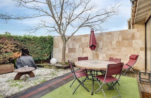 This vacation rental offers a private outdoor space with a garden, terrace, and barbecue.