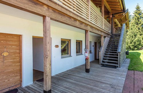 The holiday apartment boasts a private outdoor area with a balcony, that offers a wonderful view of the mountains. A shared outdoor area, consisting of a garden and a covered terrace, is also available for your use. The holiday apartment also has a shared indoor pool that is heated for you to enjoy.