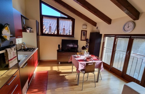 Lovely apartment with exposed wooden beams and modern furnishings, located at the foot of the historic centre of Saluzzo in a very quiet and peaceful area, a few steps from the renowned Scuola di Alto Perfezionamento Musicale ( APM ).