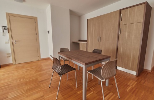 Apartment in an apartment complex is located in Schio. Apartment in an apartment complex provides accommodation, featuring Parking, TV, Kitchen, among other amenities. This Condo features Parking, TV, Kitchen, to make your stay a comfortable one.