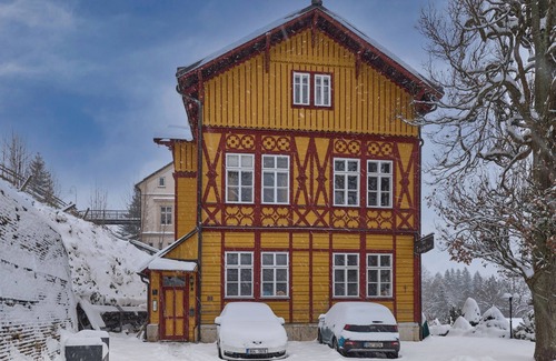 Cosy, rustic apartment house "Koreff", detached, surrounded by trees. In the resort, 200 m from the centre, in a sunny position, 500 m from the skiing area. In the house: central heating system. Linen change (suppl. charge extra). Towel change (suppl. charge extra). Room cleaning on request (extra). Parking at the house, public parking extra. Grocery 300 m, restaurant 50 m, bus stop "Janské Lázně - Lesní dům" 300 m, railway station "Svoboda nad Úpou" 3.3 km, park "Farmapark Muchomůrka" 1 km, outdoor swimming pool 7 km, indoor swimming pool 400 m, thermal baths 100 m. Tennis 1 km, indoor tennis centre 800 m, minigolf 400 m, cycle lane 100 m, cable car 600 m, ski lift 300 m, chair lift 500 m, gondola lift 600 m, slopes, ski rental 300 m, ski school 400 m, children's ski school 300 m, sled run, cross country ski track 700 m. Nearby attractions: Lanovka na Černou horu 600 m, Janské Lázně Spa, Stezka korunami stromů 1 km, bobová dráha 5 km, Pec pod Sněžkou, Relaxpark, bobová dráha 11 km, Vrchlabí 10 km, Trutnov 12 km, Malá Úpa 15 km, Zoo Dvůr Králové, Adršpach 35, Karpacz 40 km. Well-known ski regions can easily be reached: SkiResort ČERNÁ HORA - PEC, Mladé Buky 5 km, Horní Malá Úpa 16 km, Špindlerův Mlýn 30 km. Hiking paths: krkonošské naučné stezky. Please note: no lift. The apartment is located in a zone with limited traffic.