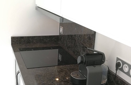 > In an art deco villa, suspended between the azure sky, the Grasse country and the sea (400m altitude), your luxurious T2, independent access, on the ground floor, 45 m2, south facing, very bright, modern, brand new, marble floor Carrara, fitted kitchen, blue marble worktop, your independent and flowery terrace, 180 SEA VIEW.