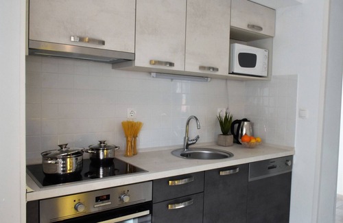 Apartment Meryl is located in Mravince, a village in Dalmatia, Croatia, located east of Solin and 7 km from city of Split. Solin and Split are both famous Croatian tourist destinations, known for it's great history and cultural heritage, so as traditional culinary offer. Property offers free private parking with no reservation required, baggage dropoff before checkin and after checkout. Baby cot is available upon request. The apartment features free wifi, air-conditioning and TV, so as kitchen equipped with oven, stove, microwave, dishwasher, refrigerator, water kettle and dining area, as well as sitting area with sofa. Apartment also consists of private bathroom with shower, hair dryer and iron. Due to property's favorable position, guests can find everything they need fore everyday life during their vacation in a vicinity of the apartment. Supermarket is located 500 meters away from the apartment, while bus station is 150 meters away. Pharmacy is 2 km away, while beach is 5,5 km from the property. Split airport - 22.5 km Bus Station Split - 10 km