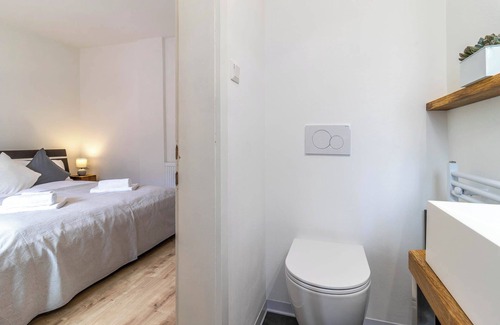 The kitchen is equipped with a stovetop, a refrigerator, and a dishwasher, as well as a coffee maker, an electric kettle, and a lobster pot. Connect to the free WiFi, or get cozy in front of the Smart TV. Bathroom amenities include a hair dryer, towels, and toilet paper. Other amenities at this 1-bedroom, 1-bathroom rental include bed sheets, bike storage, heating, and bicycle parking.