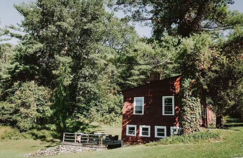 Kalarama (means “beautiful” in Greek) Cottage is a 1200 sq foot cottage. Previously run as an Apple Orchard, from 1940-1960, the cottage is situated on 23 acres of private land abbuting 300 acres of Mountain Meadow Reserve and bordering southern VT. The cottage has a full kitchen, bathroom, dining space, living area, bedroom and outdoor seating space. Enjoy the many wooded trails right out the back door and find the trails maps in the welcome binder inside. The owner of the property is a botanist & artist. Enjoy his abstract paintings, sculptures and plants throughout the space. He is also available for pre- scheduled tours of the property, of Mountain Meadow reserve and conversations about his art if you are interested!