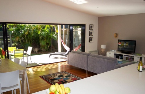 Open plan, very well equipped kitchen/dining/living area, opens right out onto the large North facing deck. The living area includes a large flat screen plasma Tv ,stereo, DVD, Kfee Coffee espresso machine and mp3/ipod dock.