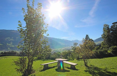 Fügen: Beautiful, cosy chalet "Auhäusl". Outside the resort, 2 km from the centre of Fügen, in a quiet, sunny, elevated position, along the wooded area, 5 km from the lake, 3 km from the skiing area, in the countryside. Private: garden, lawn for sunbathing. Patio, garden furniture, barbecue. In the house: WiFi, washing machine. Motor access to the house. Parking at the house. Carport. E-charging station. Supermarket 3 km, restaurant 600 m, bus stop "Fügen Gemeindeamt/Apotheke" 1.9 km, railway station "Fügen-Hart i.Z. Bahnhof" 2.4 km, indoor swimming pool 3.5 km, thermal baths "Erlebnistherme Fügen" 3.5 km, bathing lake "Schlitterer Badesee" 5 km. Golf course (18 hole) 5 km, tennis 3 km, gondola lift 3 km, ski bus stop 300 m. Ideal starting point for walkers, mountain bikers and for toboganning. Stove heating (sufficient wood at the house, with excessive consumption EUR 10 per delivery to be paid on spot), electrical and oil radiators.