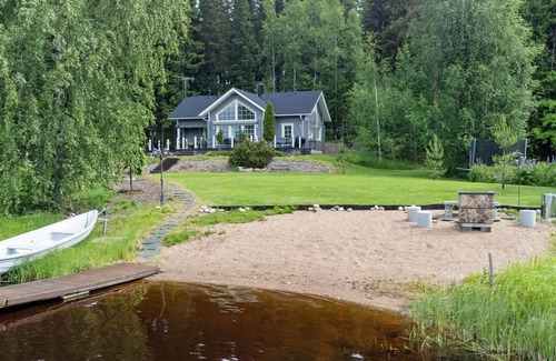 A cozy and well-equipped villa with a private sandy beach. There is a campfire site by the water, perfect for enjoying peaceful summer evenings by the fire.