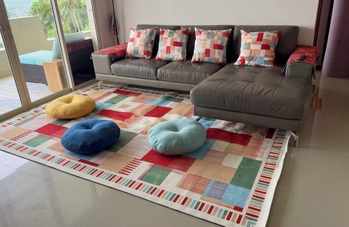 Located in Surat Thani, this condo is a dream. With 2 bedrooms featuring a king bed and a full bed, along with 2 bathrooms equipped with a bathtub and shower, guests will feel right at home. Enjoy amenities like a washing machine, iron, hair dryer, AC, WiFi, and even a fitness room. The terrace is huge where you can dine or do yoga in the morning. Both bedrooms, sitting room and terrance has a seaview and you see Koh Phangan from where you live. Relax in this terrific and soothing retreat, perfect for a nice getaway. Enjoy all that Surat Thani has to offer when you stay at our place.