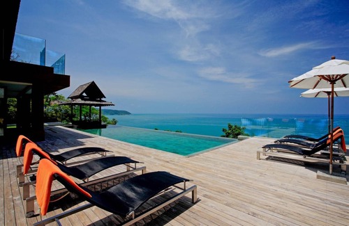 The incredible view isnt the only highlight of this luxury Phuket property, with a stunning outdoor sala one of two well appointed with lounge and dining areas. The large infinity pool is another popular feature, surrounded by stylish timber decking and comfortable deckchairs to enjoy the entire day relaxing by the pool while enjoying the calming view of the turquoise ocean beyond.