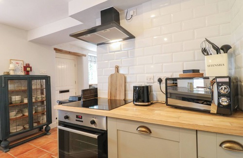 Bake House Croft, a cottage, consists of a kitchen/diner with electric oven, induction hob, microwave, fridge/freezer, washing machine, dishwasher, coffee maker, kettle, and toaster, and a sitting room with Smart TV and woodburning stove. The bedrooms consist of a king-size with en-suite cloakroom and twin. There is a bathroom with bath, walk-in shower, basin, heated towel rail, and WC. Outside, there is a front non-enclosed patio with furniture, ample roadside parking. Two well-behaved dogs welcome. Highchair, travel cot, and stairgate available. Shop 0.1 mile, pub 0.2 miles, river 1 mile. WiFi, fuel, power, bed linen, and towels included in the rent. Sorry, no smoking. Enjoy a memorable escape to Staffordshire at Bake House Croft.