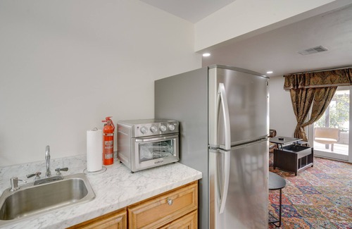 A stress-free stay awaits at 'The Orange Tree Suite,' a cozy vacation rental in Bakersfield, CA! Perfect for couples and solo travelers, this 1-bedroom, 1-bath apartment offers essentials like free WiFi, a Smart TV, and a well-equipped kitchenette. Tee off at a nearby golf course or head downtown for dining and entertainment. Later, serve a grilled dinner in the shared courtyard and unwind inside with a movie by the fireplace.