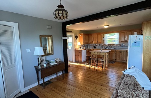 Enjoy staying close to the Bay of Fundy in our renovated Century home on the hill in Margaretsville, Nova Scotia. Relax in our sunny, open living and dining area with exposed beams, pine floors and wood stove. Take a short walk to cross the road to the beach approximately 200 ft. Rockhound and walk at low tide to discover sea treasures as the Bay of Fundy delivers the highest tides in the world. Stroll by the Margaretsville Lighthouse Est. 1859 and visit the wharf where you can view the local art gallery 'The Artist's Circle' If you like to fish you can join Mackerel enthusiasts on the wharf at high tide where rigs can bring in 4-5 at once. 'Holy Mackerel!'