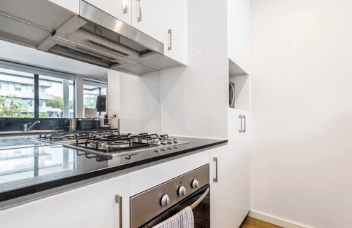 Perfectly positioned a five-minute stroll from Port Melbourne Beach and vibrant Bay Street's abundance of dining and shopping options, this bayside stay offers the best of indoor-outdoor living, with a generous terrace to enjoy. Fire up the BBQ and dine alfresco before settling in on the outdoor sofa with a sunset wine. When you’re not soaking up city vistas, relax inside with the comfort of air-conditioning, or make use of the building's shared pool and gym.