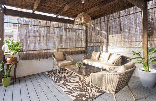 Fantastic terrace of 60m2 to get some fresh air with pergola, dining area and outdoor bar. Our favorite part is definitely the chill out area! It offers spectacular views of the city.
