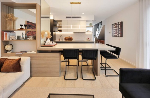 Stunning kitchen with European appliances, adjoining dining and lounge. Well stocked with everything you need to enjoy cooking as you would at home, including a coffee machine with pods for a morning cuppa!
