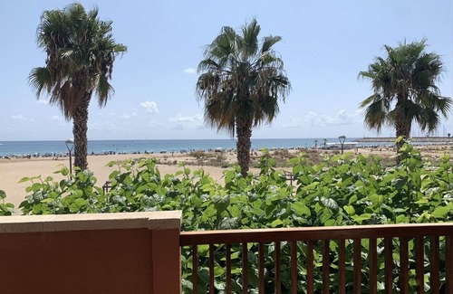Flat on the seafront on the 1st floor with lift. It has 3 bedrooms (one with double bed, one with 2 single beds and one with 1 bunk bed) with air conditioning in each one, 2 bathrooms with shower and kitchen-dining room. WIFI. It also has a terrace with sea views, communal swimming pool (available from Easter until end of October) and outdoor parking space. The flat also has bed linen and bath towels.