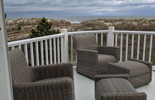 This extremely, rare beachfront rental at 5 94th Street with a pool! Located in desirable Stone Harbor and boasts unobstructed 180 degree ocean views while still being within walking distance to town. No detail was overlooked during the design process of this home which has incorporated ocean views on all levels culminating in the third floor rooftop deck. Just a seashell-throw to the famous 7 mile island white sandy beaches on 94th street this 5 bedroom/ 4.5 bath retreat is peacefully nestled in the dunes and perfectly combines beachfront living and convenience to restaurants, shopping, bay sports & activities, basketball & tennis courts, local theater and so much more.