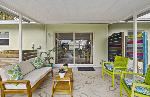 This 3BR , 2BA Mid- century pool home is your away from home beach-side getaway. Just a two minute drive to the beach , this home is situated in a quiet, family-friendly neighborhood. Indian Harbour Beach offers a retreat away from the more tourist-heavy areas, while still only a short driving distance from all that brings travelers to the Space Coast. Newly renovated with comfortable furnishings , fully appointed kitchen and bar workspace for your vacation or business trip.