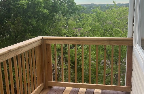 This is my personal three story 4 bedroom 3.5 bath home that I occasionally rent out when I am out of town. It is a 15-20 minute walk to ACL located 3 minutes from MOPAC and 5 minutes from down town near the Barton Creek Mall. It sits at the top of a hill in a very nice neighborhood. This house has the ultimate Man Cave game room/home theatre with pool table, pinball, video games, and wet bar. Private deck off the master bedroom and huge first floor deck with fire pit.