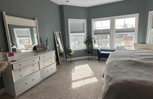 Beautiful 2,685 sqft U.S. Open home rental located in a quiet neighborhood in Southern Pines just 5 miles away from Pinehurst No. 2. We are right across the street from Moore County Airport. 13 minutes from downtown Southern Pines and downtown Pinehurst. The garage and driveway can easily park 6 cars and we have an EV charger! Our U.S. Open home rental includes 4 bedrooms, 3 full baths and can comfortably sleep 8 people. We also have a queen air mattress available upon request. Also two comfortable, large sectional couches if needed to sleep more!