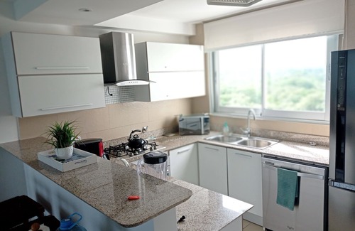Beautiful and well-appointed apartment on 7th floor with a private, covered patio that overlooks the sandy beach and swimming pools. Access to the beach is down the elevators, past the swimming pools and out the private gate, a mere two minutes. The beach is of marvelous white and black sand, mostly deserted, perfect for swimming and available for your use at any time. Alternatively, enjoy one of three swimming pools, while reclining in a comfy chaise lounge. Return to a spacious, comfortable apartment to relax on your patio as the day fades to dusk, or turn on the air con and enjoy the same view through large glass slider doors! The apartment has everything you need, is of high quality, and everything works well; all of this will help ensure a wonderful stay. The kitchen has a large assortment of pots & pans with lids, and a large assortment serving dishes to set a lovely table. In addition, there is an in-unit washer & dryer for your use.