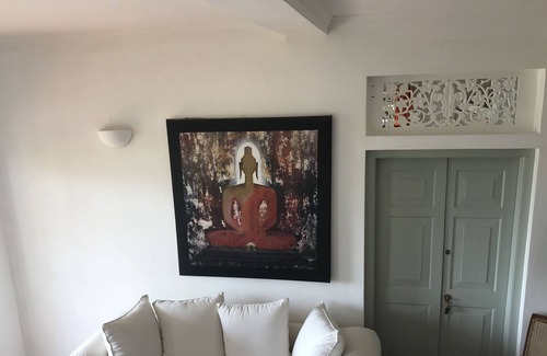There is a large swimming pool in the garden with sunbeds and umbrellas available. Please note the swimming pool has no fence or alarm, so children must be supervised. There is a outdoor dining pavilion with a table for 8 and barbeque and a smaller garden veranda by the pool. Other features include table tennis and a yoga pavilion a few metres from the beach.