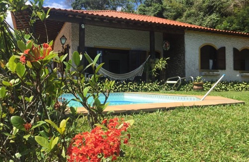 Beautiful house located on the edge of Praia Vermelha, Ibicuí, Mangaratiba. The beach has white sand and calm waters. There are 5 bedrooms with air conditioning, 2 of which are suites, 5 bathrooms, dining room, Home Theater with 65 inch TV and 500Mb fiber optic Wifi, equipped kitchen, furnished. Balcony with hammocks. Garden with swimming pool and barbecue overlooking the sea, garage, pool table and no water problems. Police guardhouse at the access and private street with ample parking. We charge for electricity according to consumption during the period.