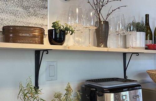 The lower suite has its own private outside entrance and features 1 king bedroom, 1 bathroom with tub/shower, kitchenette with 2 burner stove top, microwave and fridge/freezer (NO OVEN), and living area with sofa, 4k smart TV and workspace.
