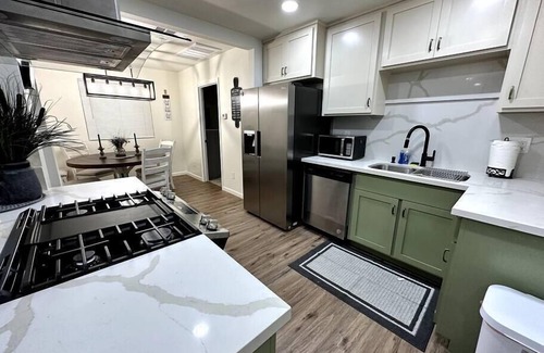 This fully remodeled 3 bedroom home is an incredible find in Lemoore. Each room has a comfortable bed with 600 thread count sheets for an incredible nights sleep. Relax and stream your favorite movie or show on one of the 4 smart TVs including the 65" TV in the living room.