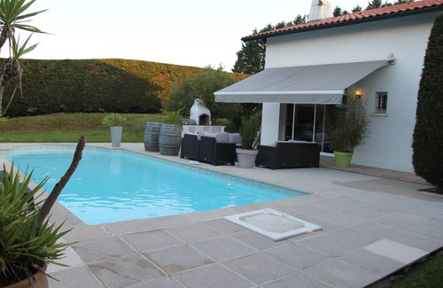 -a 20 minutes from the beaches of Biarritz and Anglet, in a quiet, beautiful Basque house with large volumes and tastefully decorated. you will enjoy in peace his beautiful garden heated swimming pool and terraces. forest walk and cycling nearby. 2 golf courses (and Bassussary souraide) to 5 minutes.